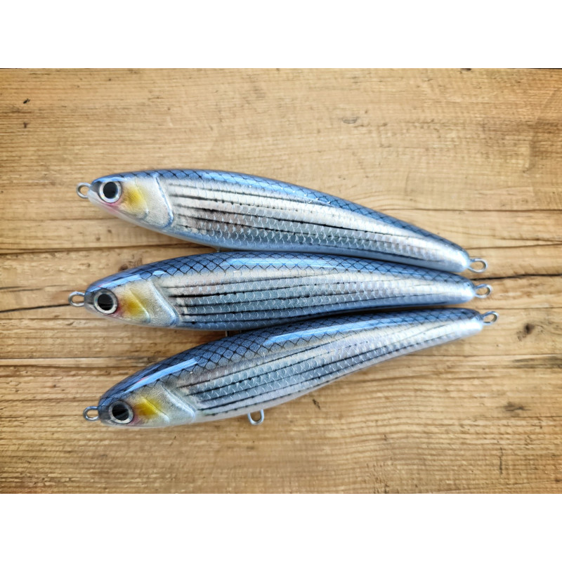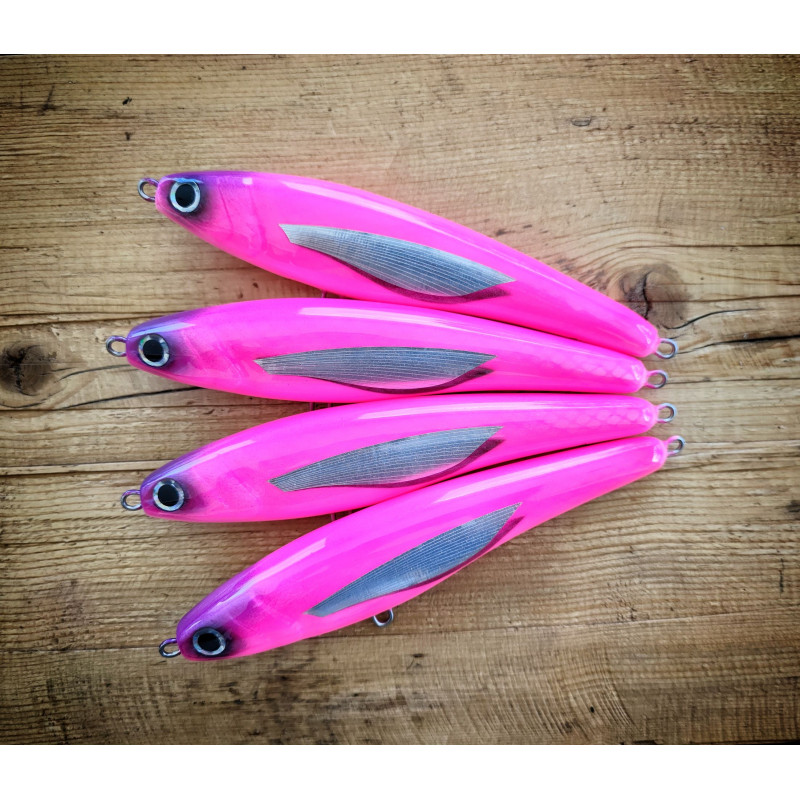 Questa stickbait sinking artigianale è progettata per affrontare predatori pelagici di grandi dimensioni, combinando robustezza, grande lanciabilità e un’azione estremamente adescante.